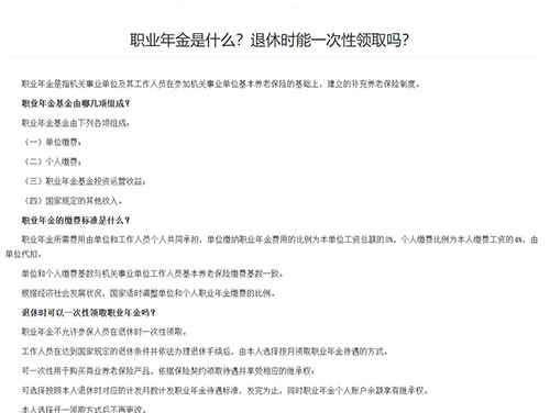 一、職業(yè)年金 職業(yè)年金是一種補(bǔ)充養(yǎng)老保障制度,既不是社會(huì)保險(xiǎn),也不是商業(yè)保險(xiǎn),而是一項(xiàng)單位福利制度,是事業(yè)單位及其職工依據(jù)自身經(jīng)濟(jì)狀況建立的保障制度,事業(yè)單位及其職工承擔(dān)因?qū)嵤┞殬I(yè)年金計(jì)劃所產(chǎn)生的所有風(fēng)險(xiǎn)。機(jī)關(guān)事業(yè)單位自2014年10月1日起開(kāi)始實(shí)施職業(yè)年金制度,《國(guó)務(wù)院辦公廳關(guān)于印發(fā)機(jī)關(guān)事業(yè)單位職業(yè)年金辦法的通知》文件于2015年4月6日正式發(fā)布。 二、職業(yè)年金的作用 職業(yè)年金主要發(fā)揮兩方面的作用。一是補(bǔ)充養(yǎng)老!掇k法》明確,單位繳納職業(yè)年金費(fèi)用的比例為本單位工資總額的8%,個(gè)人繳費(fèi)比例為本人繳費(fèi)工資的4%,由單位代扣。從本質(zhì)上看,職業(yè)年金是職工工資的延期支付,這種延期支付的目的,是為職工未來(lái)的退休養(yǎng)老做準(zhǔn)備,以避免基本養(yǎng)老保險(xiǎn)不足導(dǎo)致生活水平下降。從這個(gè)意義上講,職業(yè)年金將對(duì)提高養(yǎng)老金替代率、 緩解財(cái)政壓力發(fā)揮重要作用,也將有利于機(jī)關(guān)事業(yè)單位養(yǎng)老保險(xiǎn)制度改革的平穩(wěn)過(guò)渡。二是人事管理。建立職業(yè)年金制度,有利于吸引、 留住人才,促進(jìn)人才流動(dòng)。 三、職業(yè)年金的好處 相對(duì)于其他形式的養(yǎng)老基金而言,職業(yè)年金既能夠體現(xiàn)出專(zhuān)家投資管理的潛力和優(yōu)勢(shì),又能有較好的風(fēng)險(xiǎn)收益組合和較低的交易成本;事業(yè)單位設(shè)立的職業(yè)年金計(jì)劃是其人力資源管理和人力資本投資的重要舉措,有效的職業(yè)年金計(jì)劃有利于保留和吸引事業(yè)單位高端技術(shù)和管理人才,進(jìn)而有利于增強(qiáng)事業(yè)單位內(nèi)部的凝聚力和外部的市場(chǎng)競(jìng)爭(zhēng)力。建立事業(yè)單位職業(yè)年金,形成事業(yè)單位“基本養(yǎng)老保險(xiǎn)+補(bǔ)充養(yǎng)老保險(xiǎn)(職業(yè)年金)+個(gè)人儲(chǔ)蓄養(yǎng)老保險(xiǎn)”的多支柱型養(yǎng)老保險(xiǎn)模式,有利于事業(yè)單位持續(xù)深入地改革包括養(yǎng)老保險(xiǎn)在內(nèi)的各項(xiàng)制度,有利于事業(yè)單位退休人員的收入穩(wěn)定化和來(lái)源多元化。同時(shí),事業(yè)單位設(shè)立職業(yè)年金也是其人力資源管理和人力資本投資的重要舉措,有效的職業(yè)年金有利于保留和吸引事業(yè)單位高端技術(shù)和管理人才,進(jìn)而有利于增強(qiáng)事業(yè)單位內(nèi)部的凝聚力和外部的市場(chǎng)競(jìng)爭(zhēng)力。 實(shí)行職業(yè)年金的單位的員工,雖然平時(shí)能領(lǐng)取到的工資會(huì)少一點(diǎn),但是其實(shí)這部分錢(qián)在退休后會(huì)按照約定的形式返給員工,每個(gè)月單位也是按照一定的比例額外出了錢(qián)的,而且萬(wàn)一發(fā)生意外的話(huà)職業(yè)年金也是可以繼承的,這其實(shí)這是一項(xiàng)福利。 以上是玖邀開(kāi)業(yè)網(wǎng)小編為您整理的關(guān)于職業(yè)年金有哪些好處的內(nèi)容,希望對(duì)您有所幫助。 |