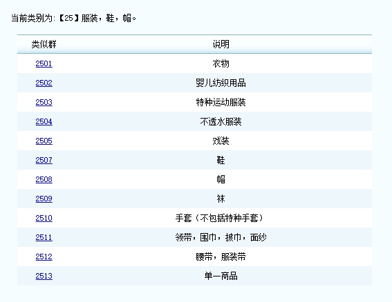 很多人可能對商標(biāo)分類不是很清楚,概念模糊。下面由代理注冊上海公司網(wǎng)小編為您解答一下關(guān)于服裝鞋帽類商標(biāo)注冊第幾類?,希望對您有所幫助! 服裝鞋帽類商標(biāo)注冊第幾類? 第25類 服裝鞋帽 服裝,鞋,帽。 【注釋】 本類尤其不包括: ——某些特殊用途的服裝和鞋(查閱按字母順序排列的商品分類表)。 群組信息 【2501】 - 衣物 【2503】 - 特種運(yùn)動服裝 【2502】 - 嬰兒紡織用品 【2504】 - 不透水服裝 【2505】 - 戲裝 【2507】 - 鞋 【2508】 - 帽 【2509】 - 襪 【2511】 - 領(lǐng)帶,圍巾,披巾,面紗 【2512】 - 腰帶,服裝帶 【2513】 - 單一商品 |